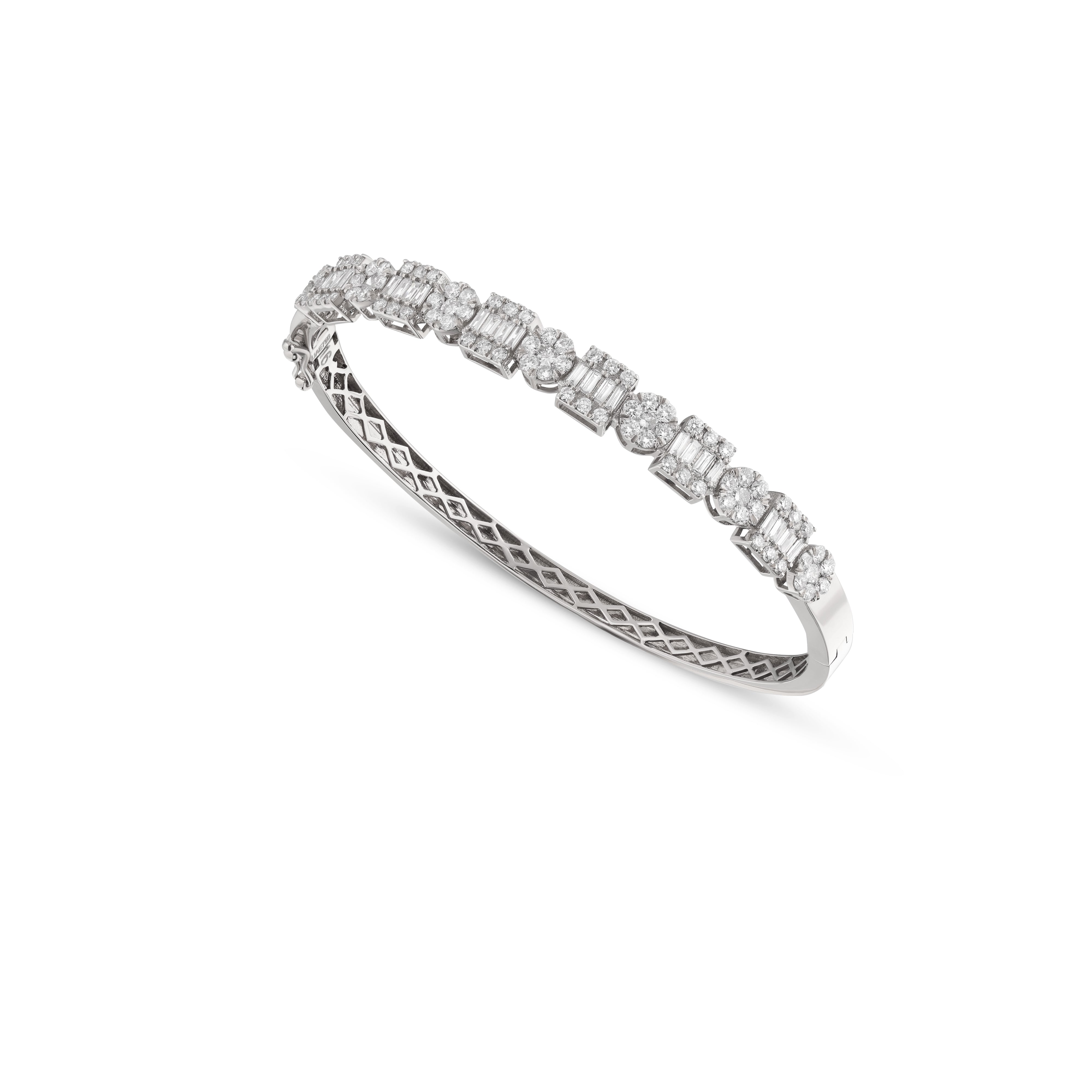 Regular price Dhs. 10,650.00Sale price Dhs. 10,650.00 Regular priceUnit price / perA luxurious bangle crafted in White Gold, size 17, weighing 10.91g. Adorned with 2.281 carats of diamonds, clarity SI, color GH. Designed with unmatched elegance and...