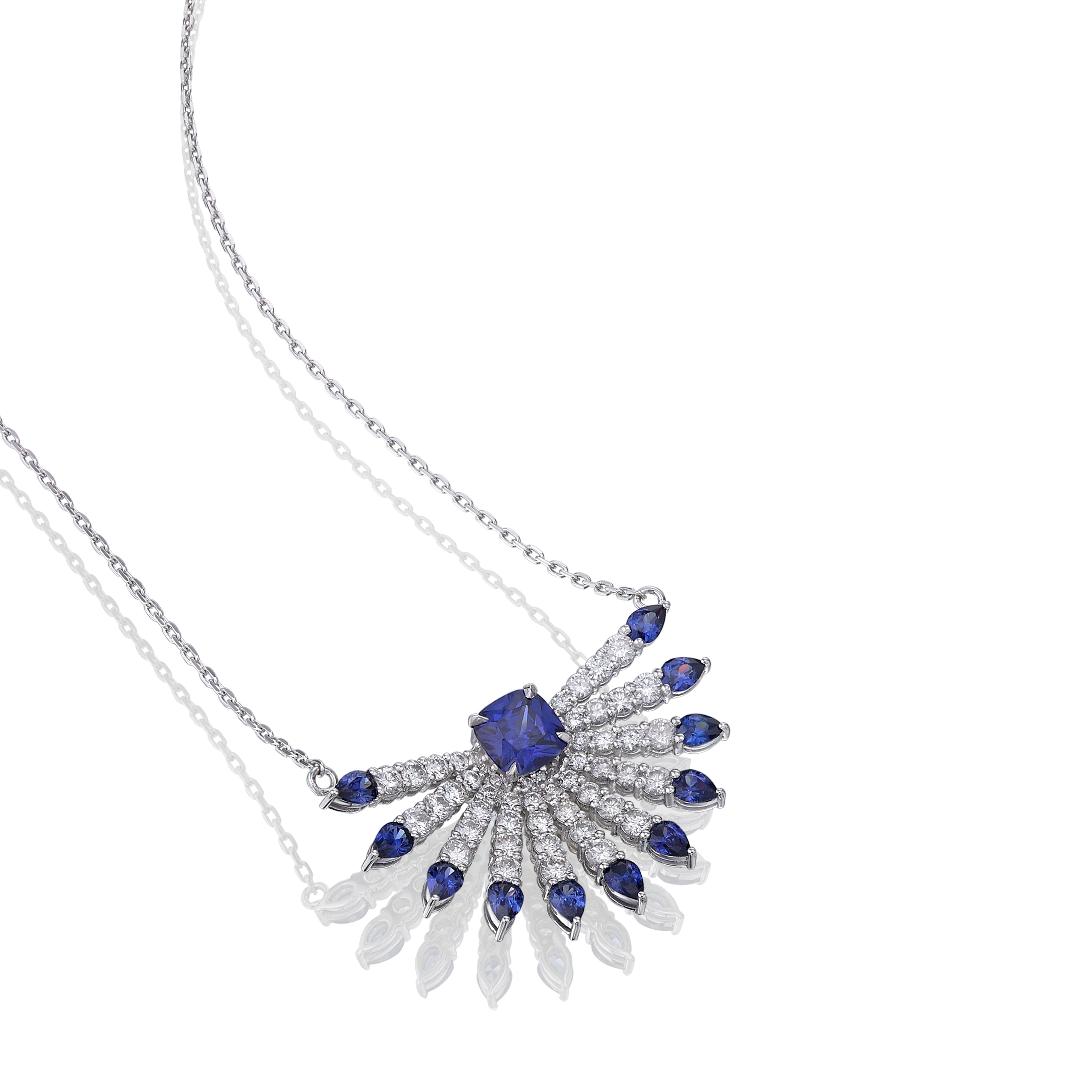 Regular price Dhs. 10,500.00Sale price Dhs. 10,500.00 Regular priceUnit price / perA luxurious pendant crafted in White Gold Gold, weighing 11.64g. Adorned with 2.015 carats of diamonds, clarity SI, color GH. Features a unique SAPPHIRE stone of...